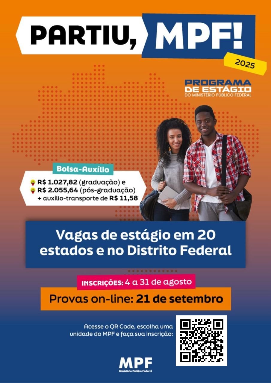 Mais informações pelo link: https://www.mpf.mp.br/pb/estagie-conosco